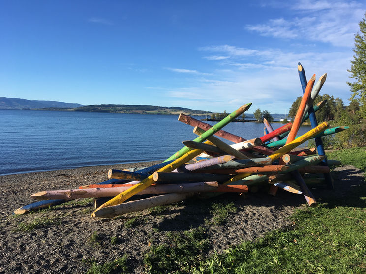 Performance and sculptures at the beach in Hamar and Lillehammer.